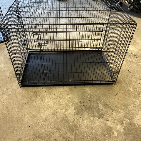 Hundebur i metall i svart farge. Buret har gittervegger og bunnbrett i plast som kan tas ut for enkel rengjøring. Egner seg til hund i passende størrelse for burets mål, for bruk hjemme, i bil eller som hvileplass. Flere åpninger med gitterdører og låsemekanisme for sikker lukking.