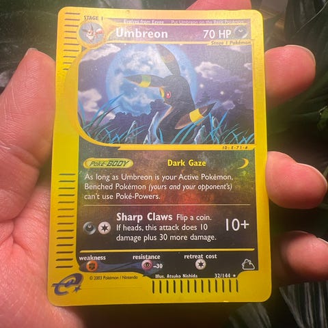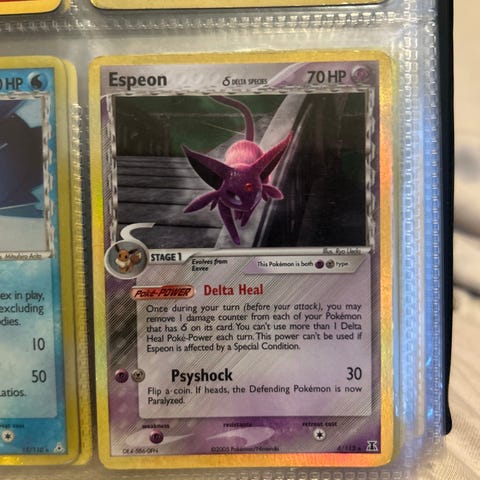 Pokémon Umbreon Delta Species samlekort. Kortet viser Pokémonen Umbreon i Delta Species-variant, med angrepene Delta Moon og Feint Attack. Standard Pokémon-bakside. Egnet for samling eller spill i Pokémon Trading Card Game.