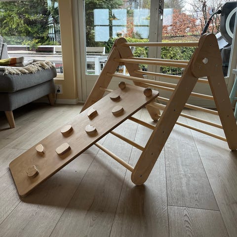 Selges hjemmelaget sandkasse av impregnert trevirke med sklie. Pris er 1000kr pga.vansskelig adkomst.Må bæres 15m og løftes over gjerde. Se bilder