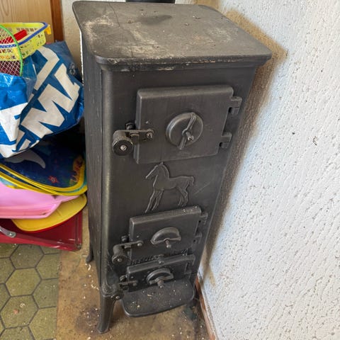 Bjørn vedovn støpejern svart