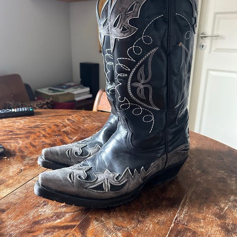 Et par nesten ubrukte Laredo cowboy boots for menn selges. Kjøpt nye på Boot Barn i Las Vegas høsten 24!Ble dessverre litt for store for meg.