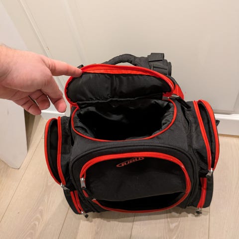 Sekken har god lagringsplass og rommer mange discer (se bilde). Den har også flere sidelommer til utstyr som vannflaske, håndkle, mobil, nøkler osv. Eget rom på toppen til puttere gjør det enkelt å holde oversikt under spill.