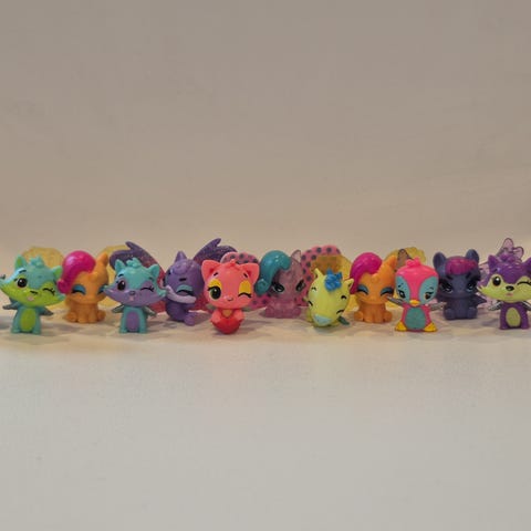 Hatchimals små figurer i plast i lilla og rosa farger. Settet består av tre ulike dyrefigurer med detaljer i flere farger. Passer for barn som liker miniatyrfigurer og rollelek og liker å samle på ting.