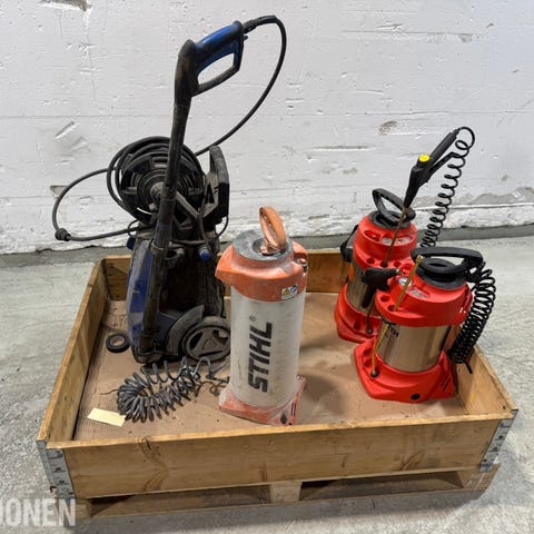 Inneholder blant annet bensinmotorer, kappemaskiner og diverse komponenter.