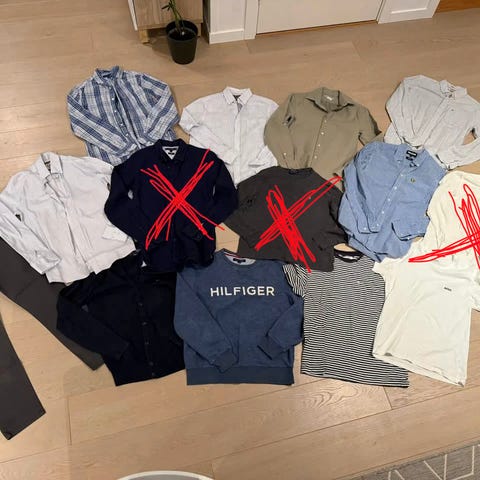 Klespakke til herre eller unge gutter str S. Genseren er laget av bomull og har blå farge. Passer til hverdagsbruk og kan kombineres med både jeans og chinos. Klassisk modell i mykt materiale som gir behagelig passform. Inne er mange forkjellig ull gant genser, Gant tShirte, jeanpaul genser,