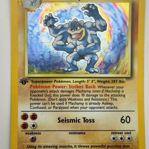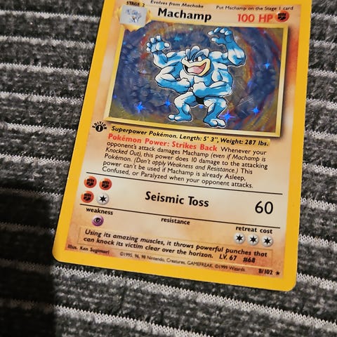 Pokémon Machamp samlekort fra Base Set 1st Edition.