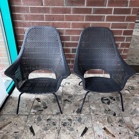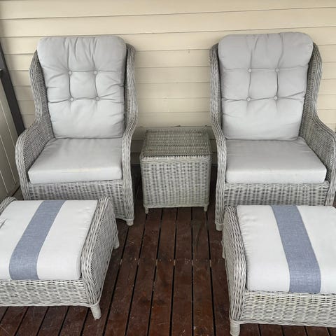 Selger fine hagestoler. Stolene passer både til terrasse og hage. Har også puter som kan følge med om ønskelig.