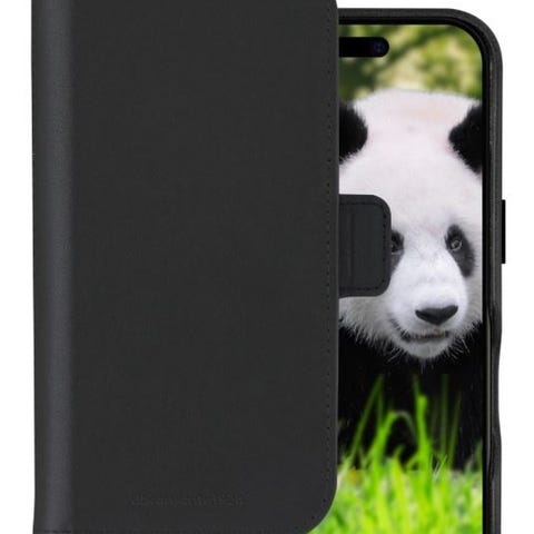 Det følger med praktisk lommebok-deksel som beskytter telefonen godt og gir plass til kort.