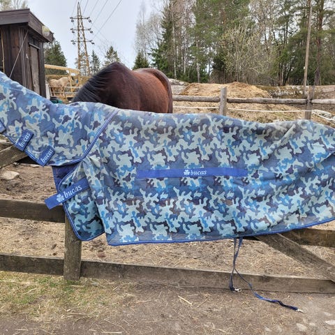 Bucas Buzz-Off Full Neck fluedekken i størrelse 165cm. inkl. mageplate. Hel og pen men skitten. Blir ikke vasket før sending.