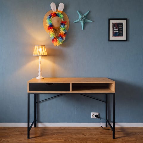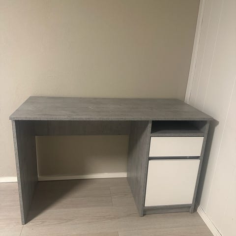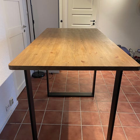 JYSK skrivebord med rektangulær bordplate i trelook og understell i svart metall. Bordet har enkel, moderne ramme med to sideben som gir god benplass under bordplaten. Passer som arbeidsbord, skrivebord eller lite spisebord i hjemmekontor, stue eller hybel. Stabil konstruksjon med rette linjer og nøytrale farger som gjør det lett å plassere sammen med annet interiør.
