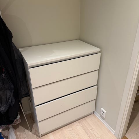 Kommoden er ren og klar til henting. Førstemann som kommer får den.