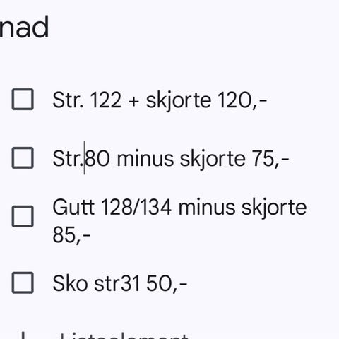 Hel lengde 65 cm. Kan sys opp på skuldrene. 150 for bunad og 150 for bunadskjorten. ( Strikken i ermet på skjorten kunne vært sydd på ny.. Ellers en liten flekk bak på ene ermet.