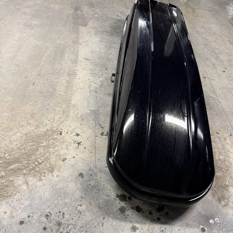 Thule Pacific 700 takboks i svart. Modellen er en lang og relativt smal takboks egnet for montering på takstativ på personbil. Boksen er lett å løfte og enkel å feste til takstativ. Boksen har sideåpning og kan åpnes fra begge sider. Boksen er konstruert i hardplast. Noen synlige bruksmerker og en skade som er reparert. Boksen er ellers i god stand og passer til transport av bagasje, ski og annet utstyr innenfor boksens lengde- og vektbegrensninger. Det anbefales å kontrollere mål, festesystem og maksimal last mot bilens takstativ og bilprodusentens spesifikasjoner før bruk.