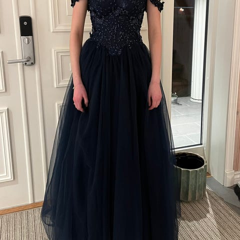 Nydelig mørkeblå kjole fra Lychinor. Kjøpt ny i februar 2026. Brukt en kveld.