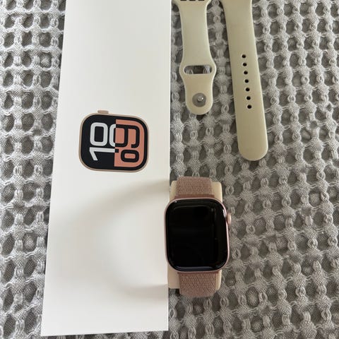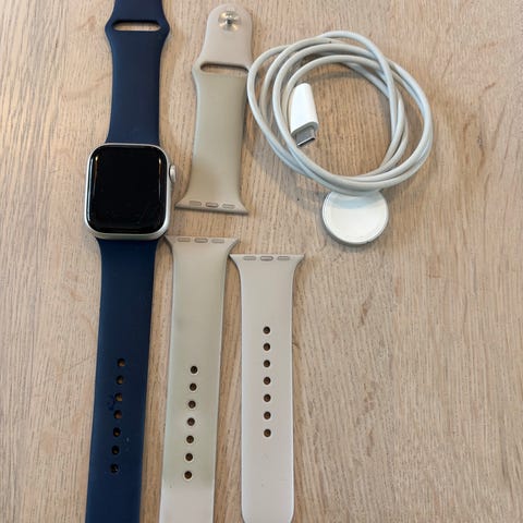 Selger min pent brukte Apple Watch Series 8 41mm GPS. Ekstra klokkereim følger med, se bilder. Lader medfølger, samt original eske.