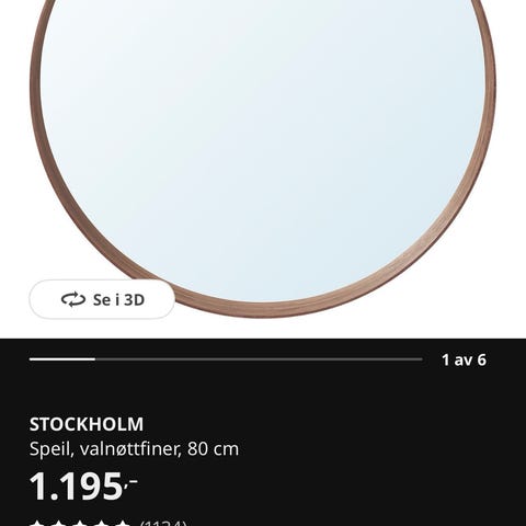 Ikea Stockholm speil valnøtt 80 cm selges.