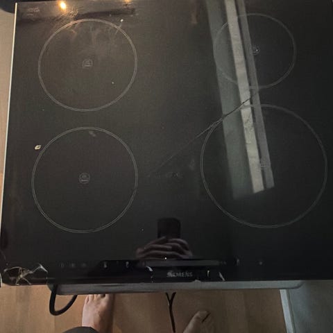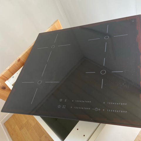 Godt brukt induksjonsplatetopp fra IKEA selges. Den er godt brukt og har noen riper/merker og noen skår på kanten til venstre på koketoppen som vises på bildene.