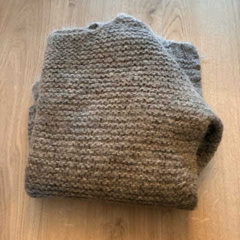 Selger et tykt ullsjal i Universal størrelse. Består av ulike grønnfarger. Ubrukt.