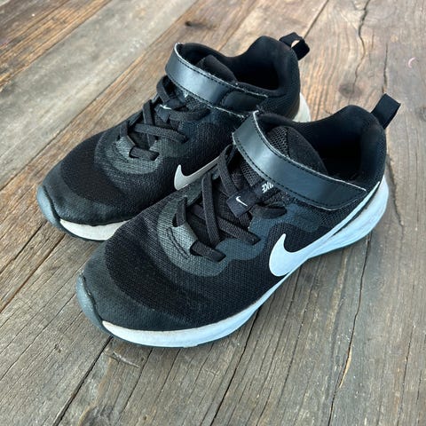Nike joggesko for barn i størrelse 31. Man ser at de ikke er helt nye, men ingen nevneverdige slitasjemerker eller skader på skoene.