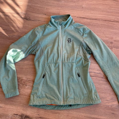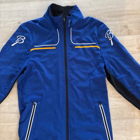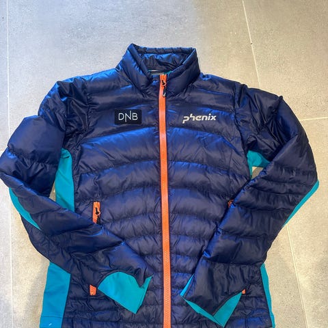 Dæhlie jakke i blå farge med hette. Jakken har vatterte felt foran og bak, glidelås i full lengde og to frontlommer med glidelås. Logo fra SpareBank 1 på brystet og «Norge» på ryggen. Egner seg som ytterjakke eller mellomlagsjakke til fritid og trening.