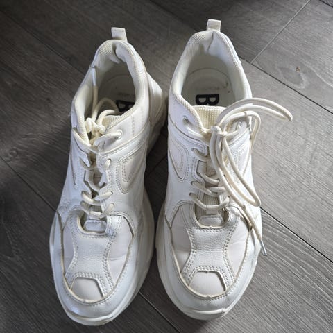 Fila sneakers/joggesko i størrelse 42. Modellen er hvit med kraftig såle og snøring foran.