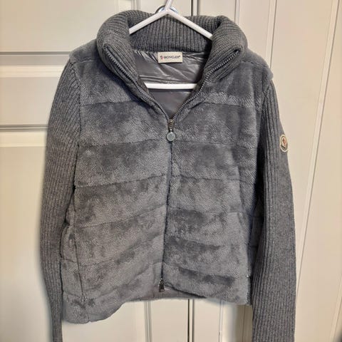 Sjekker interessen for denne moncler cardiganen!❣️🥹Den er desverre litt for liten, så blir ikke brukt så mye. Jeg er rundt 173cm, så den blir litt kort i armene mtp at jeg liker jakker litt lengre i armene🥹🥹Kjøpte den av en annen jente på tise, men er uten bruksmerker❤️Fikk kun bevis av qr-koden, så det er eneste autoriseringen jeg har!