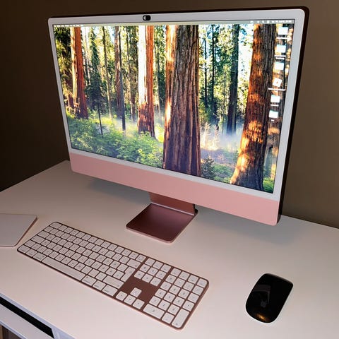 Tynn ramme og integrert fot som gir et ryddig uttrykk på skrivebordet.