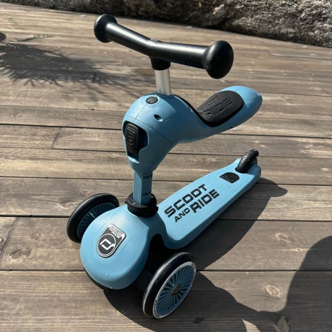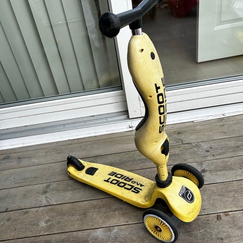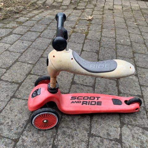 Scoot and Ride løpesykkel og sparkesykkel i grønn farge. Svært lite brukt over en sesong.