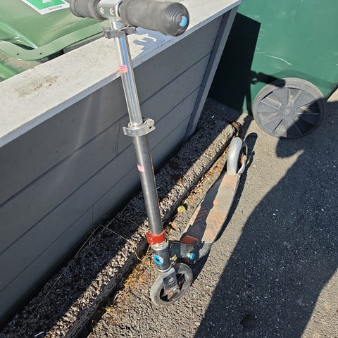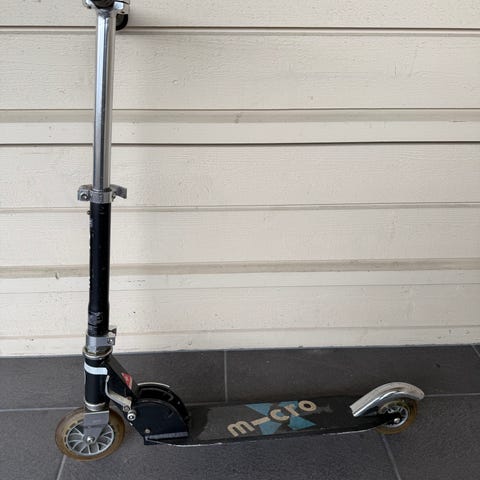 Sparkesykkel med justerbart styre i aluminium. Modellen har små hjul i hardplast/gummi, fotbrems på bakhjulet og sammenleggbart design. Dekket har sklisikkert mønster med Ollo-logo. Egner seg til bruk på jevnt underlag for barn eller lettere brukere.