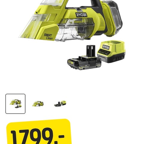 Ny og ubrukt i eske, Ryobi One+ Swift Clean RDC18 selges. Uten batteri og lader.