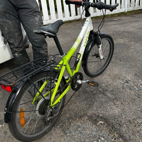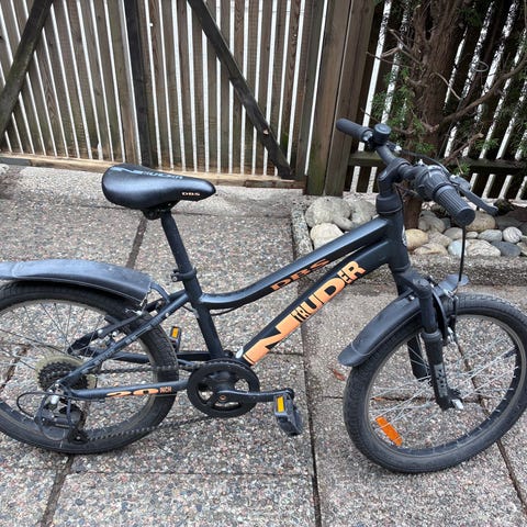 DBS barnesykkel med 20" hjul. Sykkelen har ramme tilpasset barn, med rett styre og standard sete. Utstyrt med skjermer og grovmønstrede dekk som egner seg til variert underlag. Passer som overgangssykkel for barn som har vokst ut av mindre barnesykler, typisk i skolealder der 20" hjulstørrelse er aktuelt.