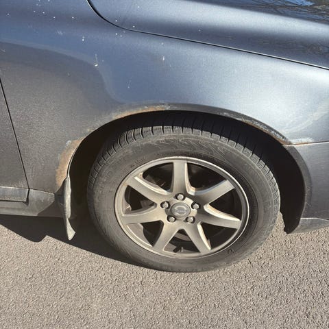 Dekkene følger med, men er slitt og bør byttes.