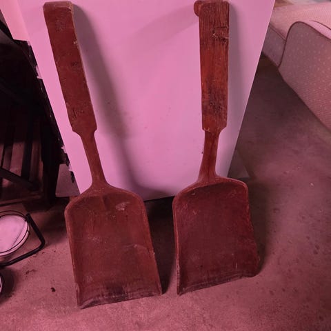 Spader til overs,de er gamle og pent brukt. Den lengste har litt skader i lakken