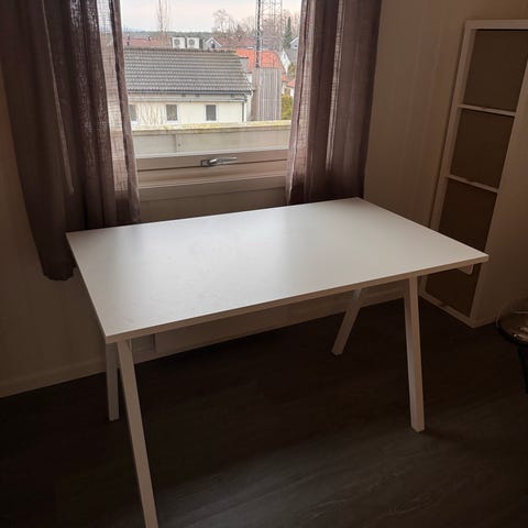 • Benbukk: IKEA FINNVARD (nåværende modell heter MITTBACK). Denne er i hvitmalt heltre og har en praktisk hylle nederst til skriver eller oppbevaring. Høyden kan justeres, slik at du kan tilpasse bordet nøyaktig til din sittestilling.