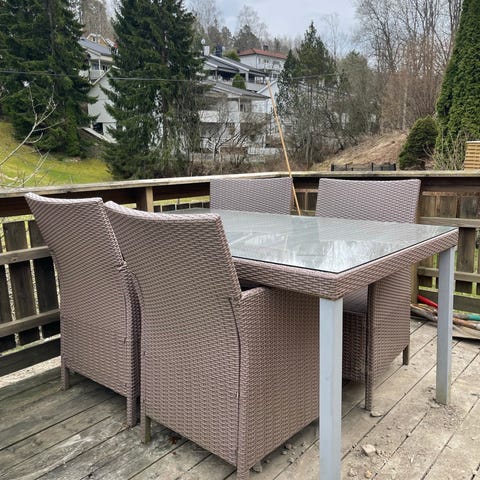 Pent brukt hagebord med 5 stoler til salgs!