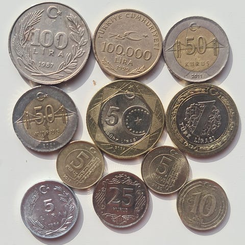 Gamle Tyrkiske Lira sedler