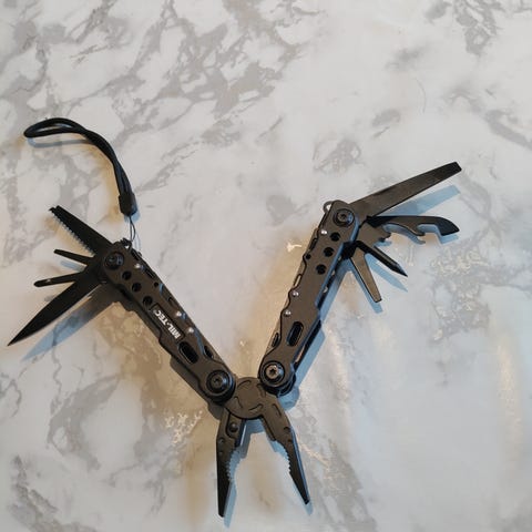 Leatherman Signal multiverktøy. Sammenleggbart multiverktøy med blant annet knivblad, sagblad, tang, skrutrekkerbits og flere funksjonsverktøy integrert i håndtakene. Egner seg til praktiske oppgaver, friluftsliv og hverdagsbruk der man ønsker flere verktøy samlet i ett kompakt redskap.