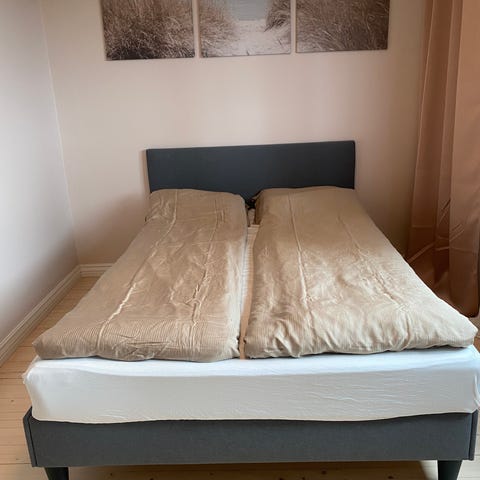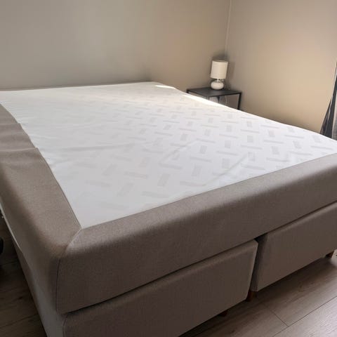 Sengen i seg selv er noen år gammel. Er Wonderland . Har stått på gjesterommet noen år. Overmadrassen er ny. Tempurmadrass. Så den formes etter kroppen.