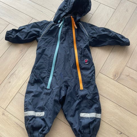 Polarn O. Pyret kjeledress til barn i størrelse 86. Litt slitte refleks og fotstrikker. Ellers hel og pen.