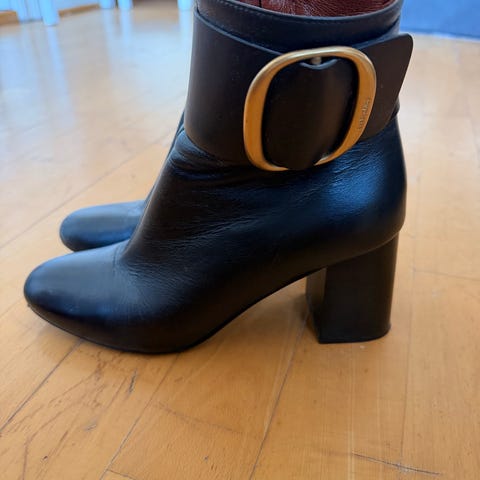 Klassiske chelsea-boots fra Chloé (See By Chloe). Brukt en kort gåtur på under en halvtime. Fremstår upåklagelige ut. Dessverre ikke riktig størrelse til meg. Veldig komfortable.