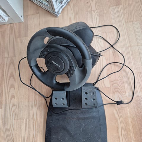 Hurricane ratt og pedaler til spillkonsoll. Settet består av ratt med flere funksjonsknapper og tilhørende pedalsett for gass og brems. Kablet tilkobling med kontakt som passer til kompatibel spillkonsoll, se bilder for type plugg. Egnet for bilspill og andre racingspill som støtter ratt og pedaler.