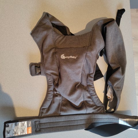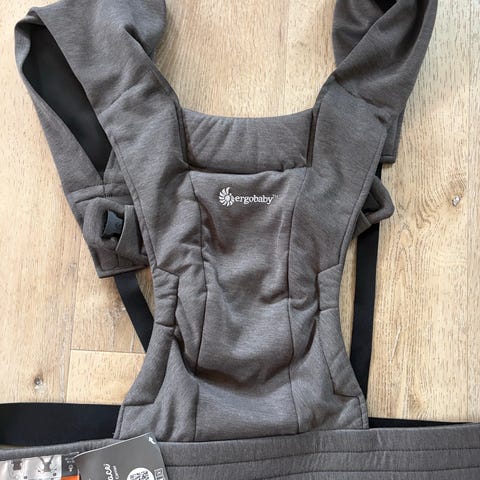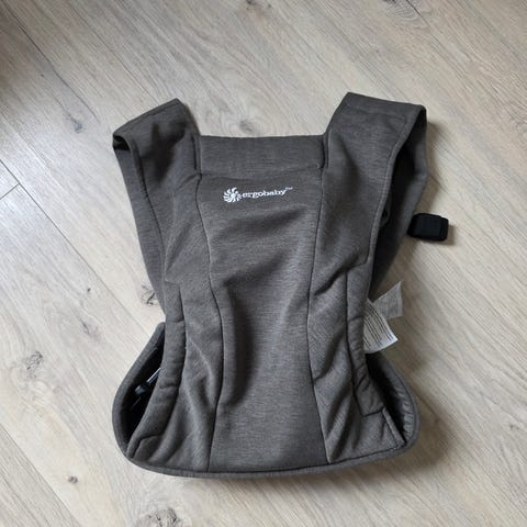 Ergobaby Embrace bæresele i grå farge. Myk og kompakt bæresele med brede, kryssede skulderstropper og hoftebelte med spenne. Selen har justerbare stropper i siden for tilpasning til bærer og barn. Egnet til å bære baby tett inntil kroppen på magen. Laget i mykt tekstilmateriale som gir god støtte rundt rygg og nakke for barnet.