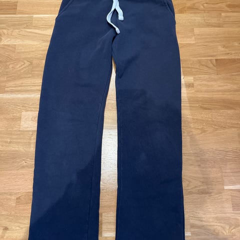 Marineblå joggebukse fra Russemerch av typen Sweatpants Girl Straight Wide Navy i str. xs. Buksen er mye brukt, men mye bruk igjen😊 Selges billig da den har litt slitasje på det ene kneet (se bilde).