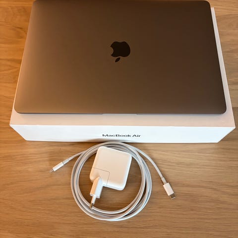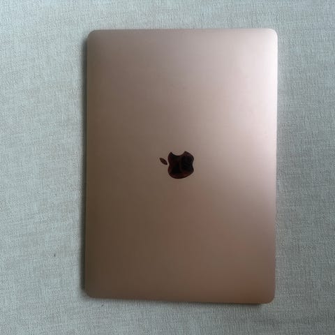 Selger en macbook air 2019 med 256 GB lagringsplass i rosegull farge. Batteriet har hatt 404 sykluser hittil. Har en liten bulk i en side. Kjører nyeste MacOS Sonoma, kan ikke oppdateres til macOS 26 / macOS Tahoe. Nullstilt og klar til ny eier.