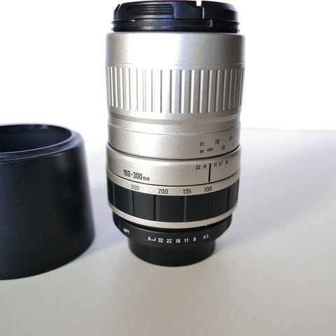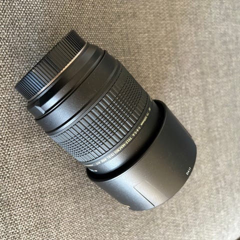 Nikkor AF 70-300mm objektiv i svart. Telezoomobjektiv med brennviddeområde 70–300mm, egnet for motiv som krever lengre rekkevidde, som sport, natur og portretter på avstand. Objektivet har manuell og autofokus (AF) og leveres med frontdeksel og solblender slik det fremgår av bildene..