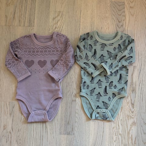 Hust & Claire og joha omslagsbody i merinoull for jente i størrelse 68. Materialet er merinoull på utsiden og bambus på innsiden som gir myk og behagelig bruk for barnet. Passer til hverdagsbruk og som innerlag på kjøligere dager.