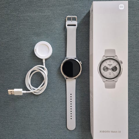 Klokken har rundt urkasse og leveres med lenke i metall/mesh i matchende farge. I tillegg følger det med en ekstra rem og en trådløs ladeplate med USB-tilkobling.