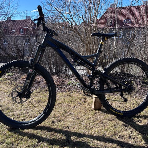 Sykkelen har 140 mm vandring i demper foran og bak.