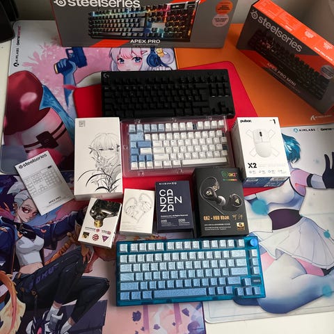 Glorious GMMK Pro tastatur i 75 % layout med svart chassis. Tastaturet er utstyrt med hvite PBT-taster og mekaniske brytere (se bilder for type og antall monterte brytere). Leveres med original GMMK Pro-eske og PBTfans-tastatursett. På bildene følger det også med verktøy for montering og vedlikehold av tastaturet, som blant annet switch- og keycap-trekkere samt børster. Egnet som mekanisk tastatur til PC-bruk, og kan tilpasses videre med andre brytere og tastesett etter behov.