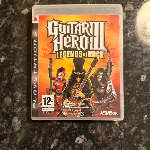 Activision Guitar Hero III Legends of Rock spill til Playstation 3. Musikksimulatorspill der spilleren bruker gitar kontroller (selges separat) for å spille med på ulike rockelåter. Inneholder singleplayer- og flerspillermoduser, inkludert karrieremodus og duellmodus. Aldersgrense 12 år. Leveres på Blu-ray-plate i original PS3-eske med omslag.